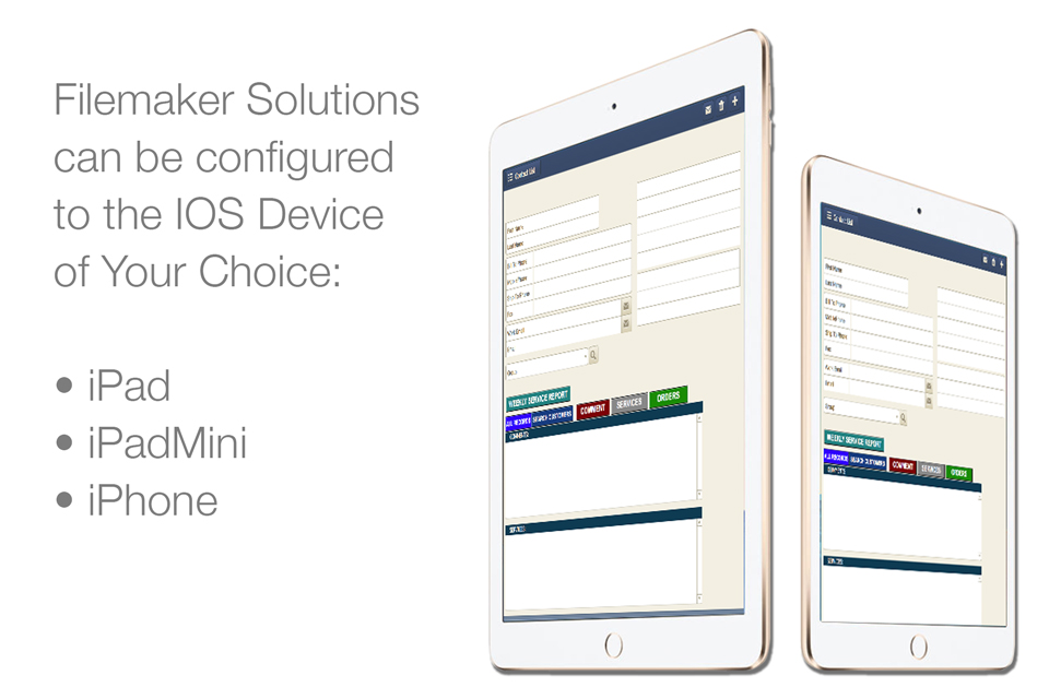Solutions can be programmed to operate on Desktop Computers, iPad, iPhone, or on Filemaker Server from any web browser.