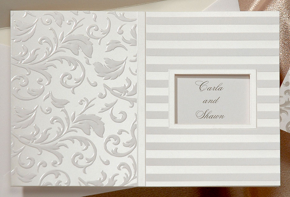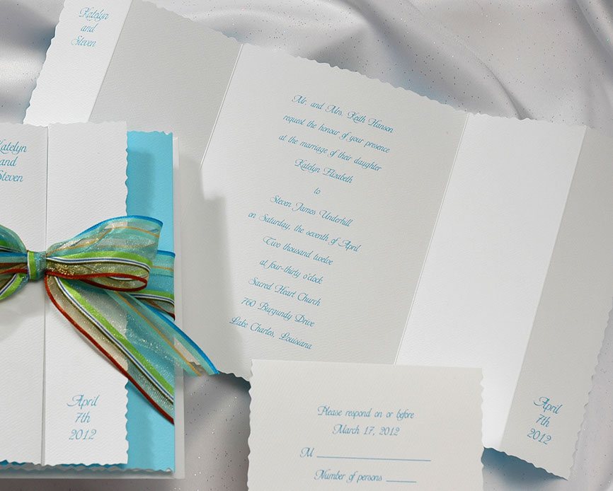Custom designs also created to match your imagination. Weber Printing has printed custom self-folding invitations, scrolls that are mailed out in tubes, translucent velum overlays and multi layered invitations you can assemble by tying with ribbon or anything you can conceive. Please email or call to discuss a custom designed wedding invitation.